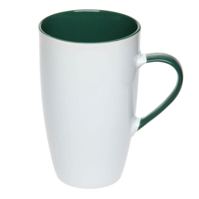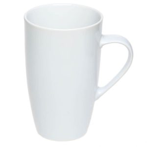 Чашка продовгуватої конусоподібної форми. Повністю глянцева, нижній торець чашки з матовою глазур’ю. Виготовлена з високоякісної кераміки. Витримує високотемпературний випал, що дозволяє наносити зображення методом обпалювальної деколі. Поле нанесення на внутрішній поверхні чашки можливе тільки у верхній чверті вироби.