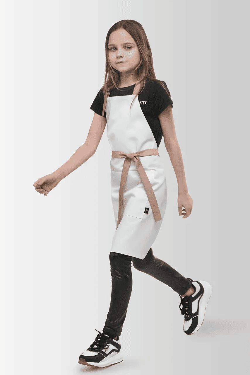 Пропонуємо Вам міні – версію фартуха Latte (який так полюбився дорослим!) – Дитячий фартух Latte Junior. Фартух для дітей віком 7-12 років, пасує і хлопчикам і дівчаткам. Він чудово підходить для різноманітних майстер класів, малювання, готування, фотосесій, для уроків праці. Фартух можна придбати як окремо так і в комплекті з одним аксесуаром: Фартух + Ковпак або Фартух + Нарукавники.