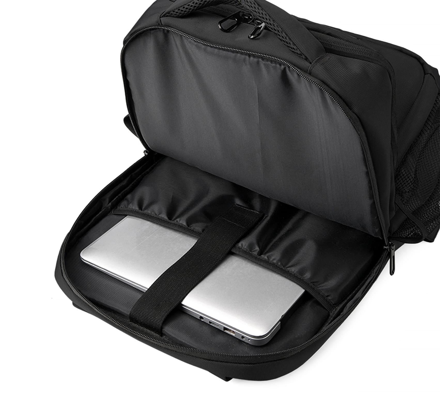 Рюкзак для ноутбука Vector з основним великим відділенням, окремим відділенням для ноутбука 15,6”, Зпереду вмістка кишеня, по бокам дві зручні кишені для пляшки, прасолі або інших речей, прихована кишеня на задній спинці та ремінь для валізи. Тканина водонепроникний 100% поліестер 1200D.
